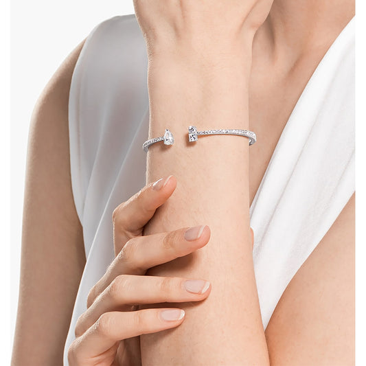 AusverkauftTwist Armreif, Weiss, Rhodiniert