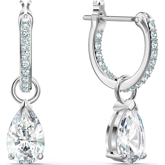 Attract Kreolen, Kristall im Tropfenschliff, Weiß, Rhodiniert