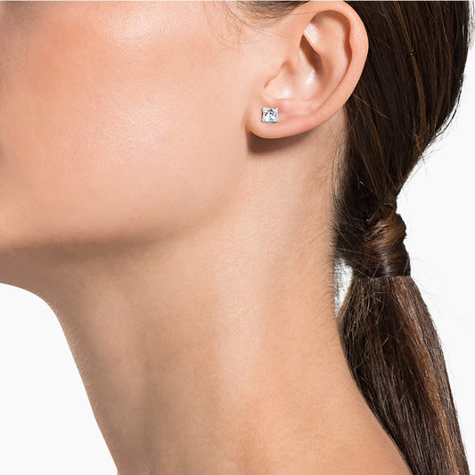 Attract Ohrstecker, Kristall im Quadrat-Schliff, Klein, Weiss, Rhodiniert