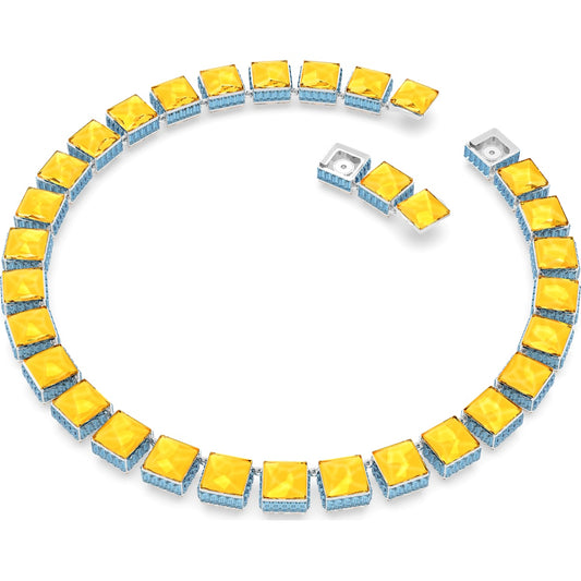 Orbita Halskette, Kristalle im Quadrat-Schliff, Mehrfarbig, Rhodiniert