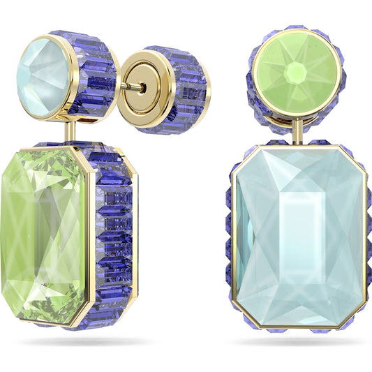 Orbita Ohrringe, Asymmetrisch, Kristall im Oktagon-Schliff, Mehrfarbig, Goldlegierungsschicht