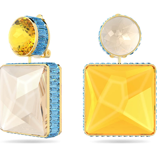 Orbita Ohrringe, Asymmetrisch, Kristall im Quadrat-Schliff, Mehrfarbig, Goldlegierungsschicht