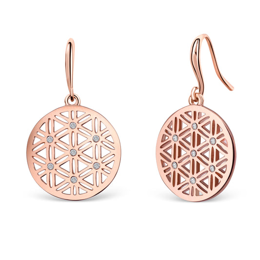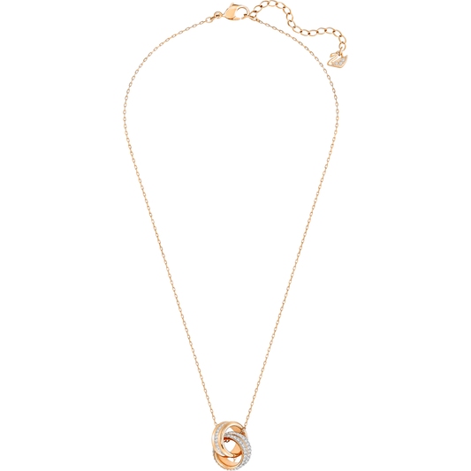 Ulteriore pendente, pavé, anelli intrecciati, bianco, placcatura in lega in oro rosa