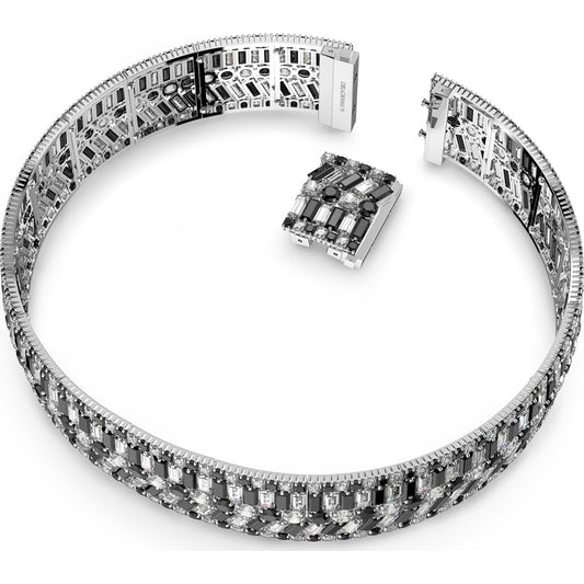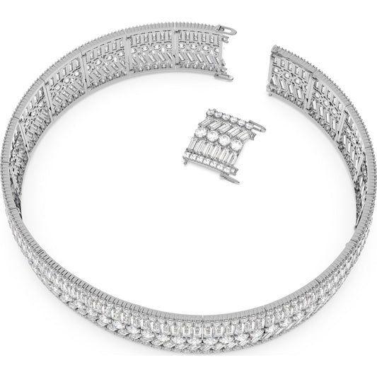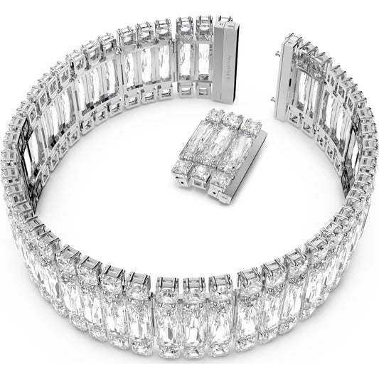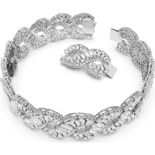 Collana Hyperbole, cristalli taglio quadrato, bianco, placcatura rodio