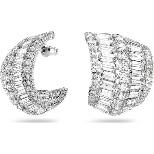 Orecchini Hyperbole, grandi, bianchi, placcati rodio