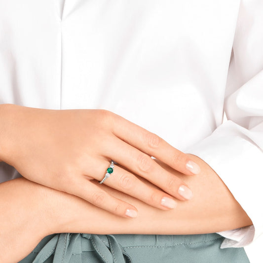 Attract Trilogy Cocktail Ring- Cristallo a taglio quadrato- Verde- Placcato in rodio