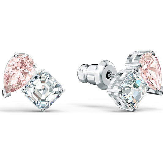 Orecchini Attract in cristallo taglio quadrato, bianco, placcato rodio
