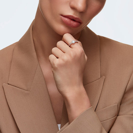 Anello Attract, rotondo, pavé, bianco, placcato oro rosa