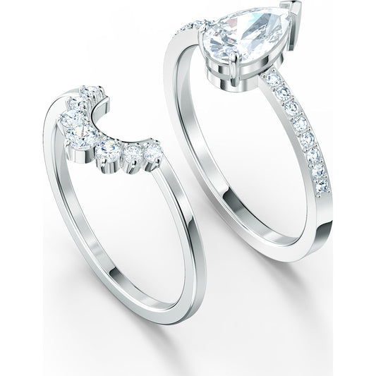Anello Attract, set (2), cristallo con taglio a pera, bianco, rodiato