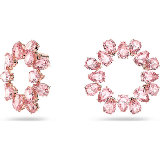 Orecchini a cerchio Millenia, cristalli taglio goccia, rosa, placcatura in lega oro rosa