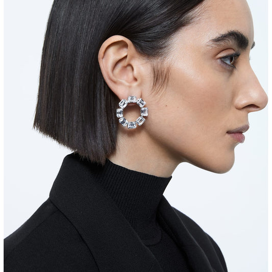 Orecchini a lobo Millenia in cristallo taglio brillante, bianco, placcato rodio