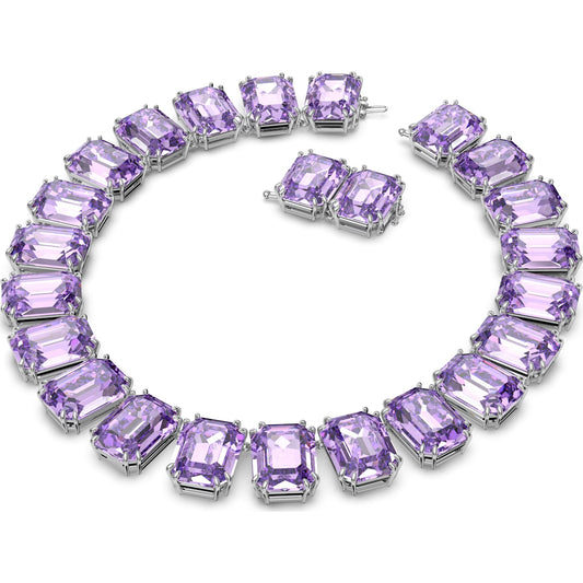 Collana Millenia, cristalli taglio ottagonale, viola, rodiato