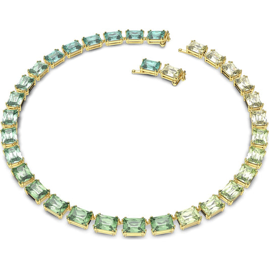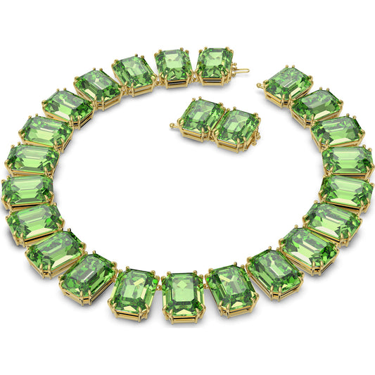 Collana Millenia, cristalli taglio ottagonale, colore verde, strato in lega d'oro