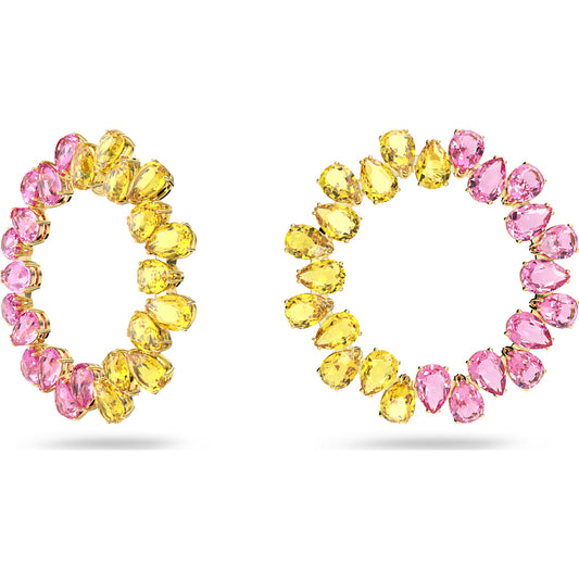 Orecchini a cerchio Millenia, cristalli taglio pera, multicolore, strato di lega d'oro
