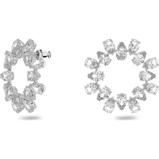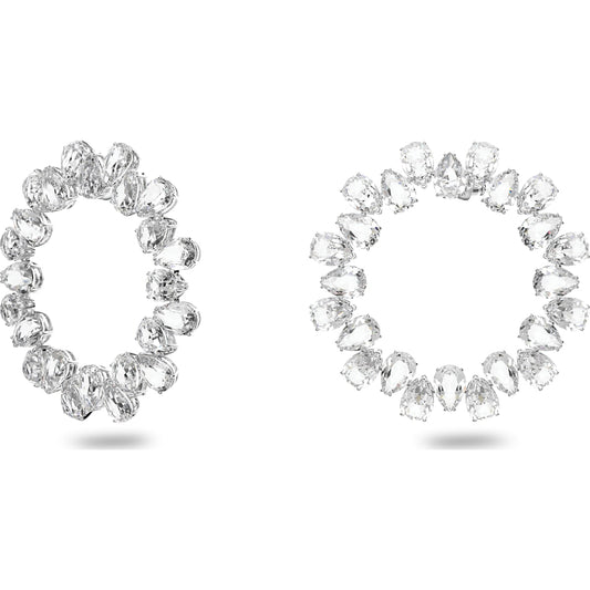 Orecchini Millenia, tondi, cristalli taglio pera, grandi, bianchi, rodiati