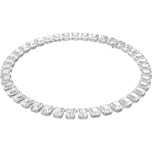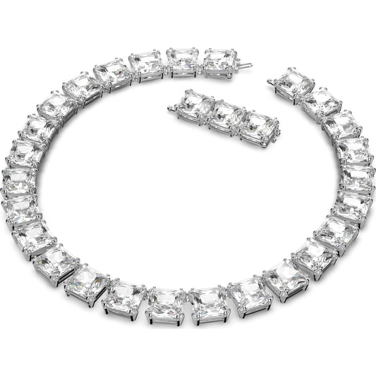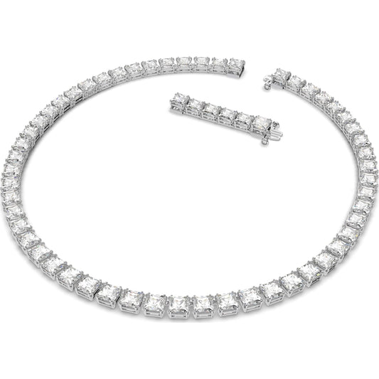 Collana Millenia, Zirconi Swarovski e Cristallo taglio quadrato, bianco, placcatura rodio