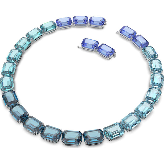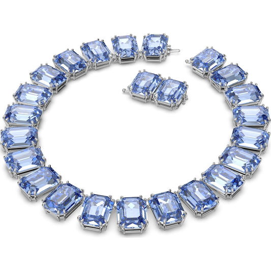Collana Millenia, cristalli taglio ottagonale, blu, rodiati