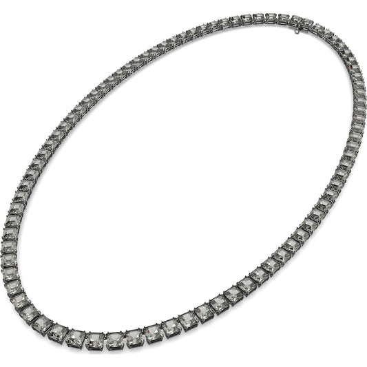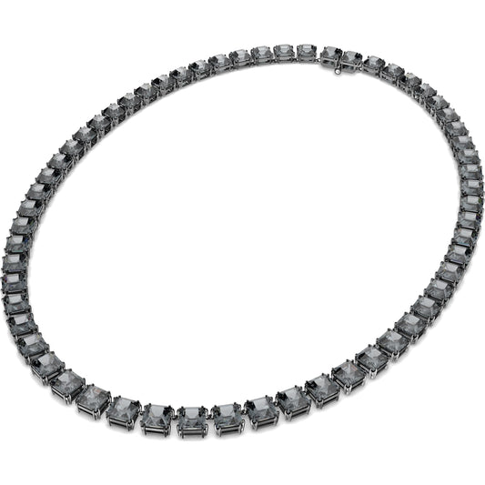 Collana Millenia, cristalli taglio quadrato, grigio, rodiato