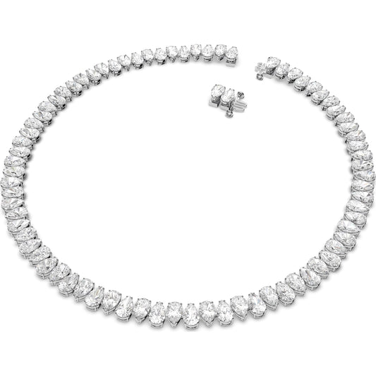 Collana Millenia, zirconi Swarovski taglio pera, bianco, placcatura rodio