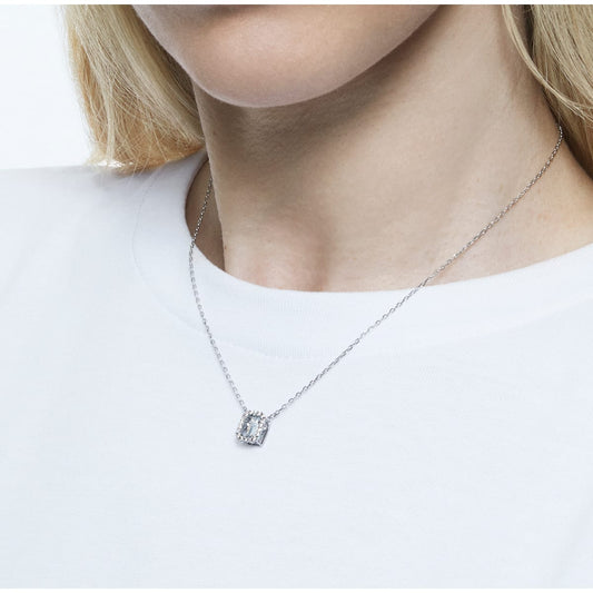 Collana Millenia, Zirconia Swarovski taglio quadrato, bianco, placcatura rodio