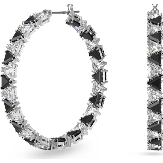 Orecchini a cerchio Millenia, zirconi Swarovski triangolari, nero, placcatura rodio