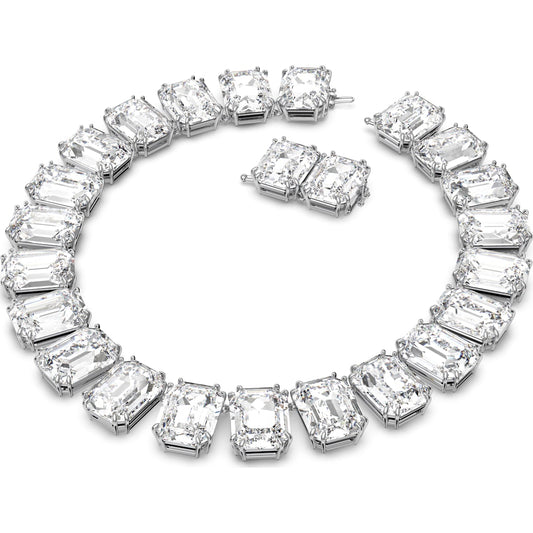 Collana Millenia, cristalli taglio quadrato, bianchi, rodiati