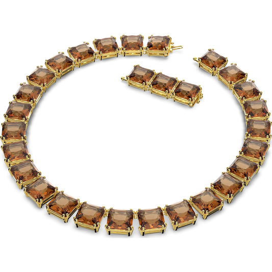 Collana Millenia, Zirconia Swarovski taglio ottagonale, colore giallo, strato di lega d'oro