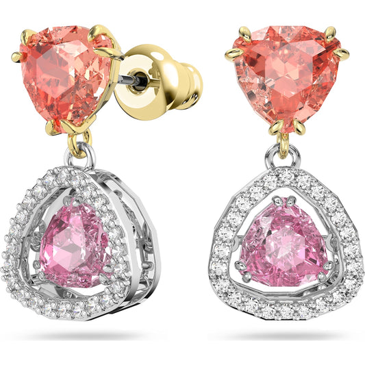 Orecchini a cerchio Millenia, zirconi triangolari Swarovski, piccoli, rosa, lega placcata oro rosa
