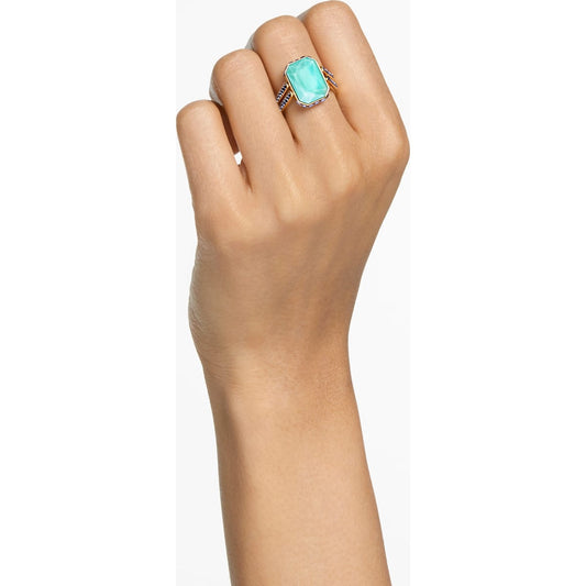 Anello Numina, cristallo taglio ottagonale, verde, strato di lega d'oro