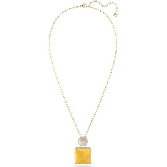 Collana Orbita, cristalli taglio quadrato, giallo, strato di lega d'oro