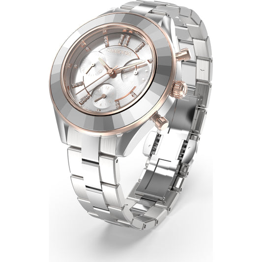 Orologio Octea Lux Chrono Swiss Made, cinturino in pelle, grigio, finitura color oro rosa