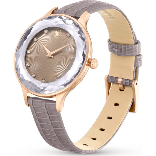 Orologio Octea Nova produzione svizzera, cinturino in pelle, colore beige, finitura color oro rosa