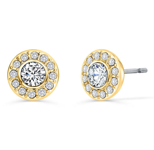 Orecchini Constella taglio rotondo pavé in bianco, placcatura in lega oro rosa