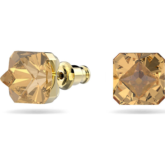 Orecchini a perno Chroma, cristalli taglio piramide, giallo, strato di lega d'oro