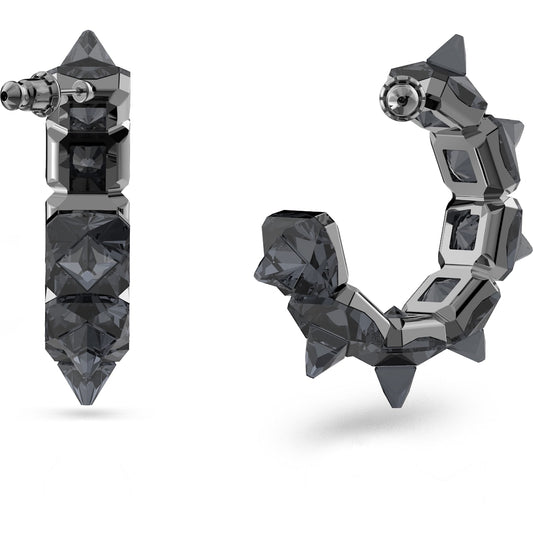 Orecchini a cerchio Chroma, cristalli taglio piramide, grigio, placcato rutenio