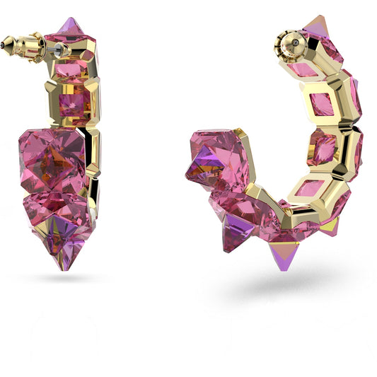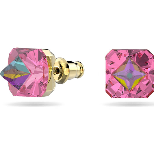 Orecchini a perno Chroma, cristalli taglio piramide, rosa, strato di lega d'oro