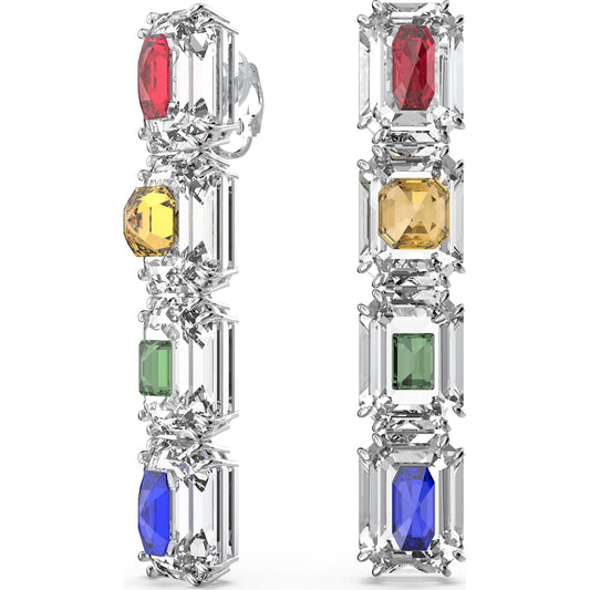 Orecchini Chroma Clip, Cristalli Oversize, Multicolore, Placcatura Rodio