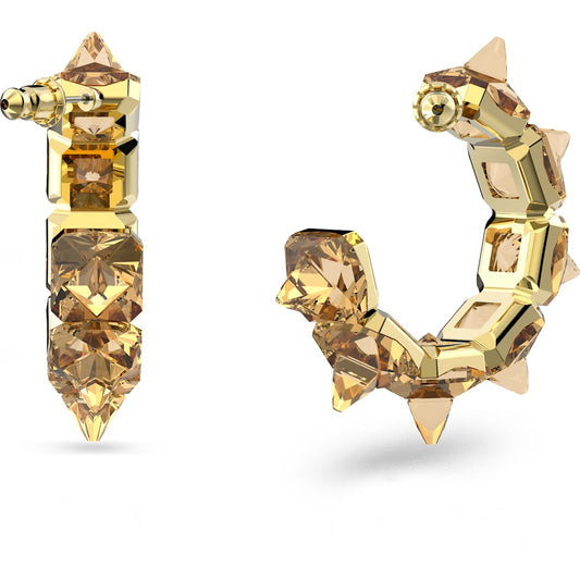 Orecchini a cerchio Chroma, cristalli taglio piramide, giallo, placcatura in lega d'oro