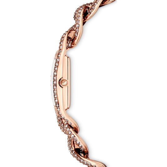 Orologio da cocktail- Full Pave- Bracciale in metallo- Tono rosa- Finitura PVD tono oro rosa