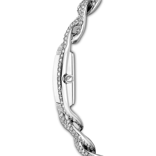 Orologio da cocktail, full pavé, cinturino in metallo, tonalità argento, acciaio inossidabile
