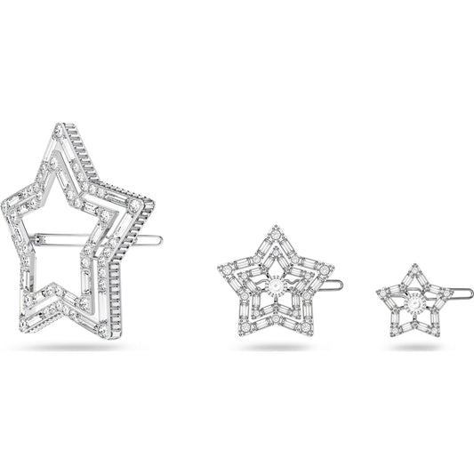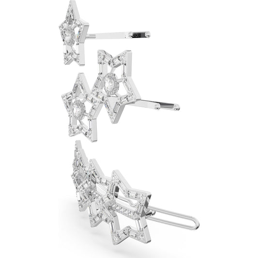 STA002 Set fermagli per capelli (3), stella, bianco, placcatura rodio