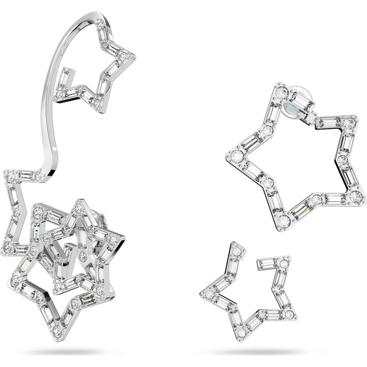 Stella Ear Cuff, singolo, set (3), stella, bianco, placcatura rodio