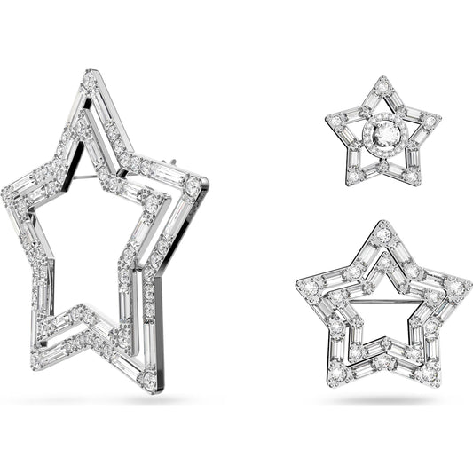 Spilla Stella, Set (3), Stella, Bianco, Placcatura rodio