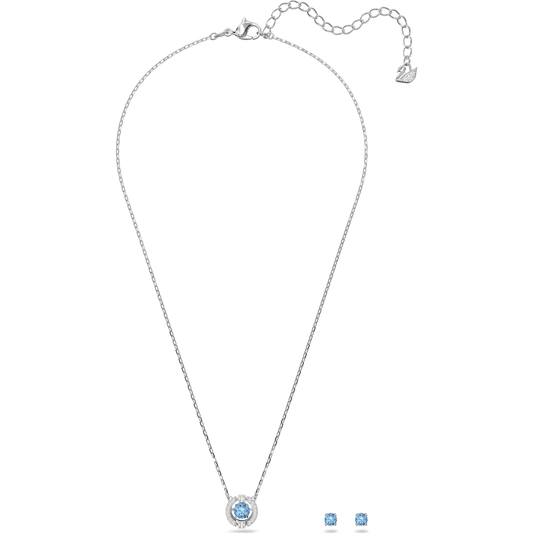 Collana Swarovski Sparkling Dance, rotonda, blu, placcatura rodio