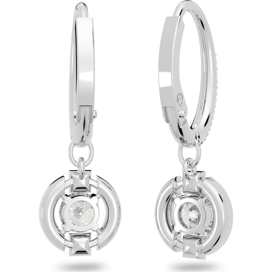 Orecchini Swarovski Sparkling Dance, rotondi, bianchi, placcatura rodio