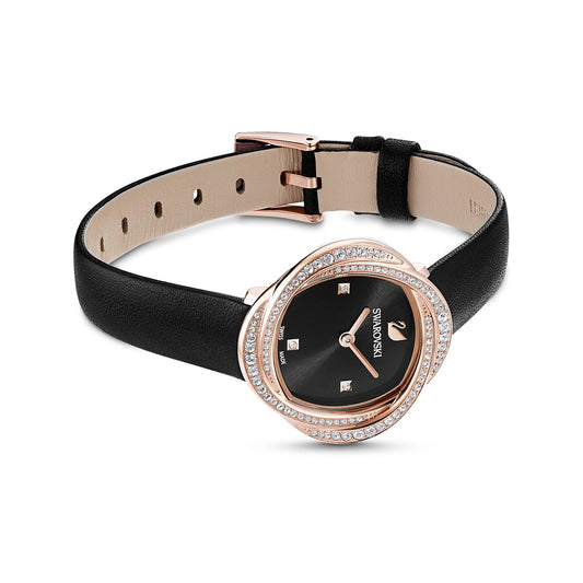 Orologio Crystal Flower, cinturino in pelle, nero, finitura color oro rosa