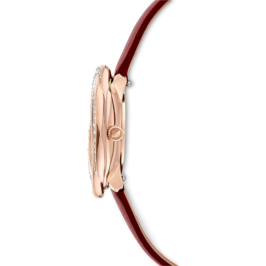 Orologio Crystal Flower, cinturino in pelle, rosso, finitura PVD con strato di lega in oro rosa