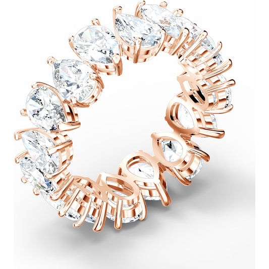 Anello Vittore, cristalli taglio goccia, bianco, placcatura in lega oro rosa