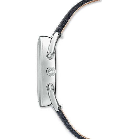 Orologio Crystalline Aura, cinturino in pelle, grigio, finitura PVD con strato di lega in oro rosa