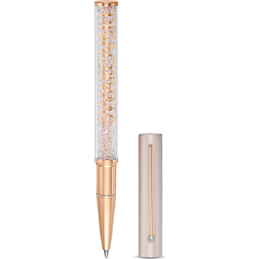 Penna a sfera lucida cristallina, colore rosa, placcatura in lega oro rosa